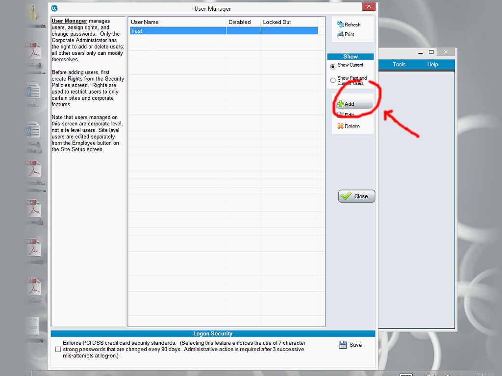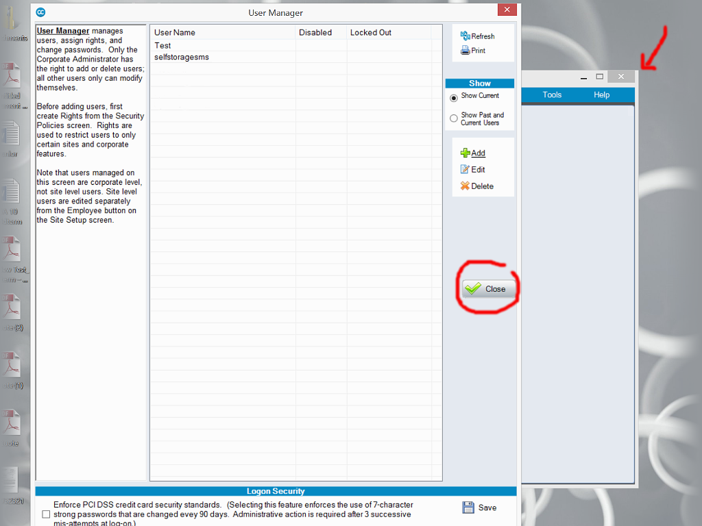 Close all SiteLink windows (as shown above with the circle and arrow).